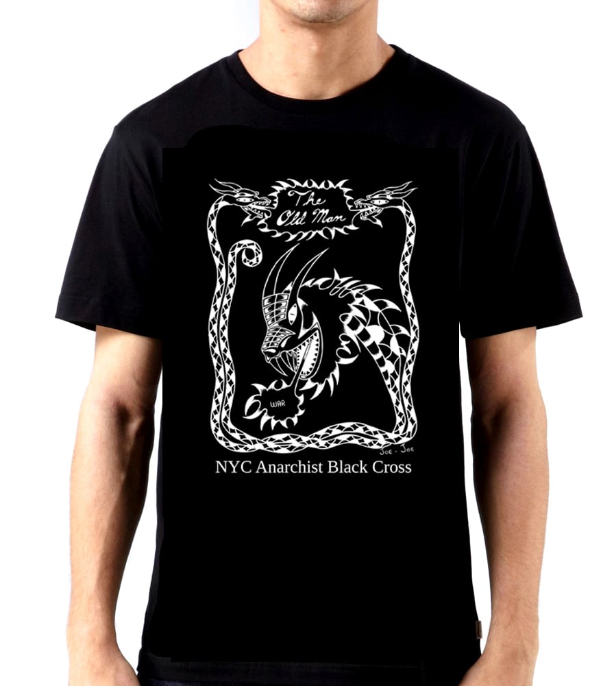 A dragon breathing the word "war" in a ball of flames. Do you need more of a description? The original artwork for this t-shirt design came to us directly from "The Old Man," Joe-Joe Bowen, a Black Liberation Army prisoner serving life for killing the warden of a prison in Pennsylvania.
